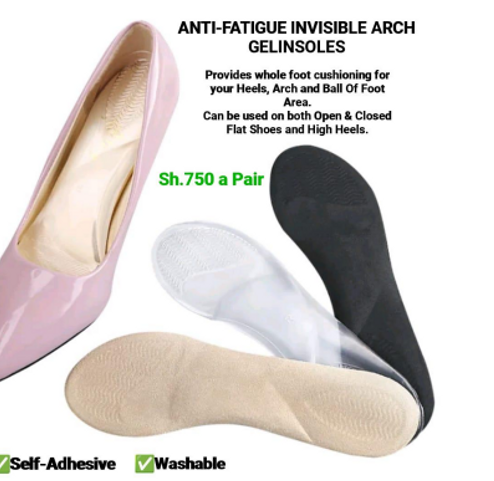 Designed for those who need extra arch support, these anti-fatigue insoles help alleviate pressure and discomfort caused by prolonged standing or walking. Crafted from high-density, shock-absorbing material, they provide structured arch reinforcement while ensuring even weight distribution to prevent foot fatigue. Their ergonomic design contours to your feet, promoting natural alignment and reducing strain on the heels, arches, and balls of your feet. Lightweight, breathable, and compatible with most shoe types, these insoles offer all-day comfort and stability, making them ideal for work, sports, or everyday wear. Step confidently with enhanced support and long-lasting relief.
