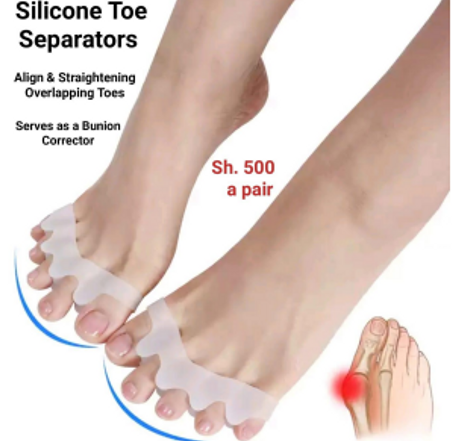 Designed to provide comfort and relief, these silicone toe separators help reduce friction, prevent overlapping toes, and alleviate discomfort caused by bunions, corns, or calluses. Made from soft, flexible, and skin-friendly silicone, they fit comfortably between the toes, promoting natural alignment while improving circulation. Their lightweight and non-slip design ensures they stay in place throughout the day, whether worn barefoot, with socks, or inside shoes. Ideal for daily wear, yoga, or post-workout recovery, these washable and reusable toe separators offer an effective solution for maintaining foot comfort and overall well-being.