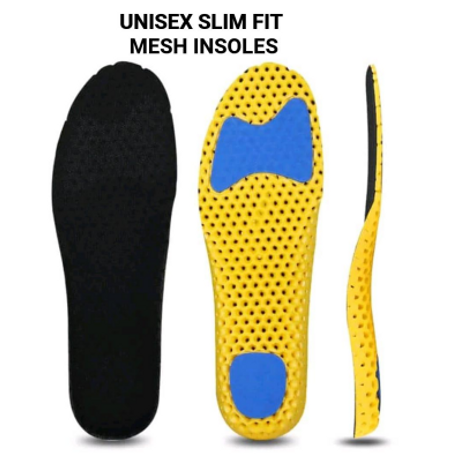 Designed for active lifestyles, these Slim Mesh Sports Insoles offer the perfect balance of support, flexibility, and ventilation. The lightweight mesh construction enhances airflow, keeping your feet cool and dry even during intense workouts. Featuring a slim profile, they fit seamlessly into athletic and casual shoes without adding bulk. The cushioned base absorbs shock, reducing impact on joints and minimizing foot fatigue. Whether you're running, training, or on your feet all day, these insoles provide the comfort and stability needed to perform at your best, ensuring every step feels light and supported.